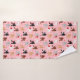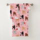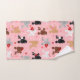 Belle Saint Valentin Poodles avec en noir, blanc, gris, abricot et des manteaux de couleur marron, rouge, rose et blanc pois et pulls de coeur avec des empreintes de pattes éparpillés et flèche sur un arrière - plan rose.