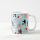 Belle Saint-Valentin Poodles avec en noir, blanc, gris, abricot et brun vêtement de couleur rouge, rose et blanc pois et pulls de coeur avec des empreintes de pattes éparpillés et flèche sur un arrière - plan bleu.