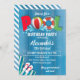 Ein Sommerpool-Geburtstagsparty-Design mit blauem Holzhintergrund und Billardgrafik mit passendem Rücken. Um auf erweiterte Bearbeitungstools zuzugreifen, klicken Sie auf den Link "Personalisieren" und dann auf "Weitere Anpassungen vornehmen".