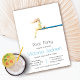 Einfache und moderne Party Einladung mit einem schönen Mädchen auf einem Tauchbrett mit tropischen Getränken. Dieser hier ist bei einer blonden Person. Alle Formulierungen können an Ihre Bedürfnisse angepasst werden! Ideal für eine Braut, einen Geburtstag, einen Mädchenausflug oder einen Junggeselinnen-Abschied.