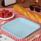 Perfekte Teller für ein Party mit Freunden. Iss gutes Essen im Schatten der Palme!