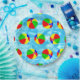 Sommerschwimmbad Party Teller mit einem Beachball in einem coolen Schwimmbad. Fügen Sie Text zur Personalisierung hinzu.