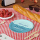 Die Papiertafel aus blauem Party des Pools ist ideal für jede Ansammlung am Pool. © Morning 6