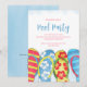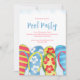 Dieses Design verfügt über eine Party Einladung mit Pool, mit einem Sommer, trendig, cool, niedlich, Strand, tropischen Thema, ideal zum Schwimmen, und schwimmen Party mit niedlichen Flip Flops.