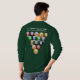Ein Set Billardbälle in den glänzenden Farben von Gelbem, blau, rot, lila, orange, grünen, bräunen sich und schwärzen, mit grünem Hintergrund, um einer wirklichen Pooltabelle zu ähneln. Die Bälle werden in einem der richtigen Gestelle in standardisiertem AchtBall vereinbart: zwei hintere Eckbälle in den verschiedenen Anzügen, Ball 8 in der Mitte und Spitzenball auf der Fußstelle. Ein Spaß und eine bunte entspannende Illustration für das cueist, den Poolspieler, den Billiardspieler, den Snookerspieler oder den Stichwort-Sportler in Ihrem Leben. Macht auch wunderbaren Dekor für ein Mannhöhlen-, Spielraum-, Billardwohnzimmer-, Poolhallen-, Stangen-, Taverne-, Pub- oder Junggeselle-Party. Fertigen Sie mit Ihren Namen, Lieblingszitat oder anderem Text besonders an.