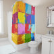 Ein künstlerisch inspiriertes, dynamisches Pop-Muster mit einem Raster von bunten Quadraten, die jeweils mit einem lebhaften Farbspritzer, Grunge-Texturen und abstrakten Pinselstrichen bestückt sind.
