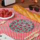 Dieses lebendige Muster zeichnet sich durch fette, rote Herzen aus, die auf einem weißen Hintergrund mit dynamischen schwarzen Doodles verteilt sind. Das spielerische Design, das an die Pop-Kunst erinnert, verwendet starke Linien und skurrile Formen, um ein lebendiges und dynamisches visuelle zu schaffen. Die Gegenüberstellung von leuchtend roten Herzen und abstrakten schwarzen Strichen ruft ein Gefühl von Liebe und Spontaneität hervor.