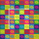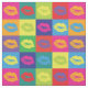 Heller und farbenfroher Pop Art Stoff mit einem Muster von großen Lippenstift Küssen, auf Plätzen.