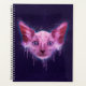 Une peinture numérique texturale d'une tête de chat Lykoi avec des rayures, des éclaboussures, et goutte sur un arrière - plan texturé rugueux.
