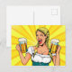 Pop Art Oktoberfest Frau mit Bier Postkarte