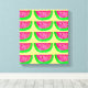 Inspiré par l'art pop, cette illustration originale d'aquarelle est un dessin de mignon, de hanche, de rose et de pastèque verte dans un motif sur un arrière - plan jaune citron pastel. Ce fruit original et amusant design est lumineux et coloré et vous apportera un sourire sûr.