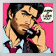 Pop art style image of hunky guy speaking on the telephone.