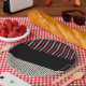 Pop-Farbstreifen rot, grau, schwarz und knochenwei Pappteller