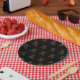 Machen Sie Ihr NYE Party unvergesslich mit dieser modernen Schwarz- und Goldplatte. Die Wörter POP FIZZ CLINK sind in einem Imitat goldenes Muster dargestellt. Es ist Zeit für ein Champagner-Fest! Wenn Sie die Hintergrundfarben ändern oder die Designelemente anders anordnen möchten, können Sie auf "Bearbeiten mit dem Design-Tool" klicken.