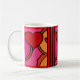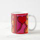 Was für ein Spaß! Das Design auf dieser großen Tasse der Keramik ist einfach etwas so Glückliches und Hellseherisches, das es unmöglich macht, nicht zu lächeln! Leslie Sigal Javoreks Originalwerk ist in einem abstrakten Pop-Art-Stil mit Ketschup-Herzen und hellen, warmen Farbtönen in heißen Rosa, Orange und Schwarz-Konturen gegen helles weißes Porzellan gehalten.