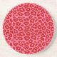 Roter Leoparden-Untersetzer. Die Hintergrundfarbe kann angepasst werden.