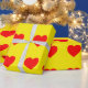 Einfaches, warmes rotes Herz auf lebhaftem gelbfarbenem Hintergrund. Grafisch entworfene Dekorationsidee. Ästhetische Form, die gemeinhin verwendet wird, um Liebe, Unterstützung, nahe Bindungen, Freundschaft und Bewunderung zu repräsentieren.