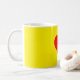 Einfaches, warmes rotes Herz auf lebhaftem gelbfarbenem Hintergrund. Grafisch entworfene Dekorationsidee. Ästhetische Form, die gemeinhin verwendet wird, um Liebe, Unterstützung, nahe Bindungen, Freundschaft und Bewunderung zu repräsentieren.