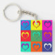 Pop-Kunstdarstellung mit Herzdekoration auf farbenfrohen Plätzen