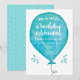 Allez, c'est une fête d'anniversaire pour votre petit ! Cette adorable invitation d'anniversaire comporte un ballon bleu aqua et une typographie manuscrite qui est moderne et tendance. Le fond est orné d'un motif rusé. Tous les détails sauf la rubrique "Pop on over pour une fête d'anniversaire" sont personnalisables. © Mini Moi Prints