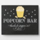 Popcorn Bar Sign with included stand. Perfekt for weddings, birthdays, holidays, or the man cave! No frame or other hardware required. Just set up and go!