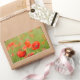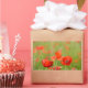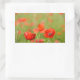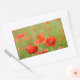 Autocollant photo rectangulaire de fleurs de pavot rouge vibrantes dans un champ vert plein de pavots. Il a une forte émotion de bonheur, printemps et été.