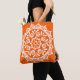 Dieses weiße Mandala liegt auf einem hellen, mohnfarbenen, orangefarbenen Hintergrund. Die Farbe ist hell und kreativ. Teil der Brosya Mandala Kollektion. Dieses Design wird möglicherweise nicht so hell gedruckt, wie es online erscheint.