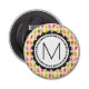 Ein Flaschenöffner mit süßem Sommermuster mit Popsikeln und Eiscreme-Kegel in farbenfrohen, lebendigen Aquarellfarben. Schreiben Sie Ihr individuelles Monogramm in einen runden Rahmen mit einer skurrilen Blume.