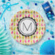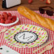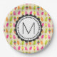 Papier Teller mit einem süßen sommerlichen Muster mit Popsikeln und Eiscreme-Kones in bunten, lebendigen Aquarellen. Schreiben Sie Ihr individuelles Monogramm in einen runden Rahmen mit einer skurrilen Blume.