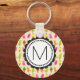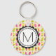 Ein Schlüsselanhänger mit süßen Sommermustern mit Popsikeln und Eiscreme-Kegel in bunten, lebendigen Wasserfarben. Schreiben Sie Ihr individuelles Monogramm in einen runden Rahmen mit einer skurrilen Blume.