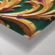 A pink lotus flower with golden leaves and a green background, symmetrical composition, intricate details, ornate design, floral arrangement, decorative pattern, botanical art.