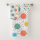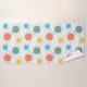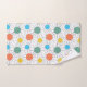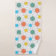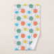 Cet ensemble de serviettes a un design moderne du milieu du siècle avec des lignes derrière orange, jaune, turquoise et vert.