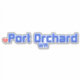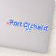 Port Orchard WA Aufkleber mit blauen 3D-Buchstaben. Die Namen der Städte in Washington sind in weißem Hintergrund und transparent.