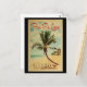 Ein einzigartiges Retrodesign aus der Mitte des Jahrhunderts in der modernen Port St. Lucie Florida Kunstdrucke im Vintage Reiseplakatstil. Es verfügt über eine geschwungene Palme am Sandstrand mit Ozean unter einem blauen bewölkten Himmel.