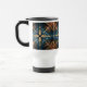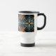 Tasse mit "Portal" ein abstrakter, geometrischer Entwurf durch Susan Wallace. Copyright © 2010, Susan Wallace. Eine Reihe geometrische Formen in glitzernden Schatten von Orange und Blau strahlt von einem zentralen Punkt aus, ganz umgeben durch Bögen des Goldes.