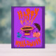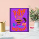 Illustration originale d'une tasse de café de sorcière Amoureux des chats d'Halloween, baguette magique, potion, minuscules fantômes mignons, citrouille et chauve-souris volant avec lettrage à la main disant Happy Halloween. Dans des couleurs vives et vives modernes avec violet et orange amusant illustration pour les enfants.