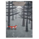 Un renard rouge sauvage solitaire se dresse sous les pins dans une forêt sombre. Pour la nature, la faune et les amoureux des animaux.