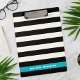 Le porte - bloc chic présente de larges rayures noires et crème avec un accent d'aqua turquoise estivale et votre nom ou votre choix de texte dans une police de style rétro.