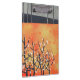 Un tableau paysager de la floraison de l'épine noire au printemps sur un arrière - plan de corail orange.