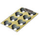 Sur un arrière - plan d'or, on voit des boules de pelouse noires avec une prise
