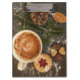 Design présente une photo d'une boisson et d'une décoration de Noël.