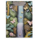 This artwork portrays a magical jungle waterfall, cascading gently amidst a vibrant landscape of pastel-coloured jungle plants and flowers. A flurry of delicate butterflies flutters throughout, adding a whimsical touch to this serene and lush oasis.