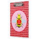 Ce porte - bloc génial présente une jolie petite abeille de Valentines. L'abeille a un corps jaune-fleur avec des rayures noires et des antennes rouges. Il se tient sur un morceau de nid d'abeille en forme de coeur rouge et est entouré de tournesols. Chaque fleur a des pétales rouges qui correspondent à l'abeille romantique et à un centre noir. Il y a un texte blanc au milieu du nid d'abeille qui dit le message romantique "Abeille mienne". Cette petite abeille est idéale pour montrer votre amour pour quelqu'un de spécial. Un motif de petits tournesols rouges entoure l'abeille.