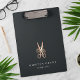 Porte - bloc personnalisé chic pour votre salon ou votre salon de coiffure dispose de deux lignes de texte personnalisé en lettrage blanc classique, sur un arrière - plan noir doux et riche orné d'une paire de ciseaux fleuris en feuille de faux cuivre. Le design se répète à l'envers.