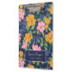 Beautiful floral clipboard for your small business, perhaps a beauty salon, spa, nail salon, hair salon or interior design business. The personalized clipboard has a lush large scale floral pattern printed on the cover in vibrant yellow, pink, green, and blue colors, all drawn by hand on a tablet to form a unique floral pattern. Personalize with your name in a thin signature script.