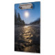 Décoré d'une image de la lune reflétant les eaux glacées de la rivière Portage lors d'une froide nuit d'hiver en Alaska. Par Ted Raynor