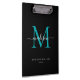 Porte-bloc Noir Turquoise Monogramme vert Élégant Nom de scri