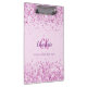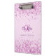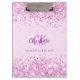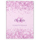 Un arrière - plan rose vif. Décoré de poussière de parties scintillant violet et rose. Personnalisez et ajoutez votre prénom, vos initiales monographiques et votre nom complet. Le prénom est écrit avec un script de style moderne écrit à la main. Lettres violettes et roses.