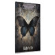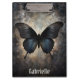 Un beau papillon noir et bleu nuit sur un arrière - plan grunge texturé crée un magnifique porte - bloc de style gothique. Personnalisez avec votre nom en bas. Le dos est noir.