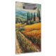Apportez le romantisme de la campagne italienne à votre espace de travail avec ce Porte - bloc Golden Toscany Dreams, qui présente un magnifique paysage peint inspiré des collines dorées et des vignobles de Toscane. Les coups de pinceau inspirés de Van Gogh ajoutent une touche artistique à vos tâches quotidiennes, tandis que la construction robuste garde vos papiers en sécurité. Parfait pour : Destination planificateurs de mariage Vignoble & vinerie paperwork Italie passionnés de voyage Artistes et professionnels créatifs Décor de bureau rustique-chic